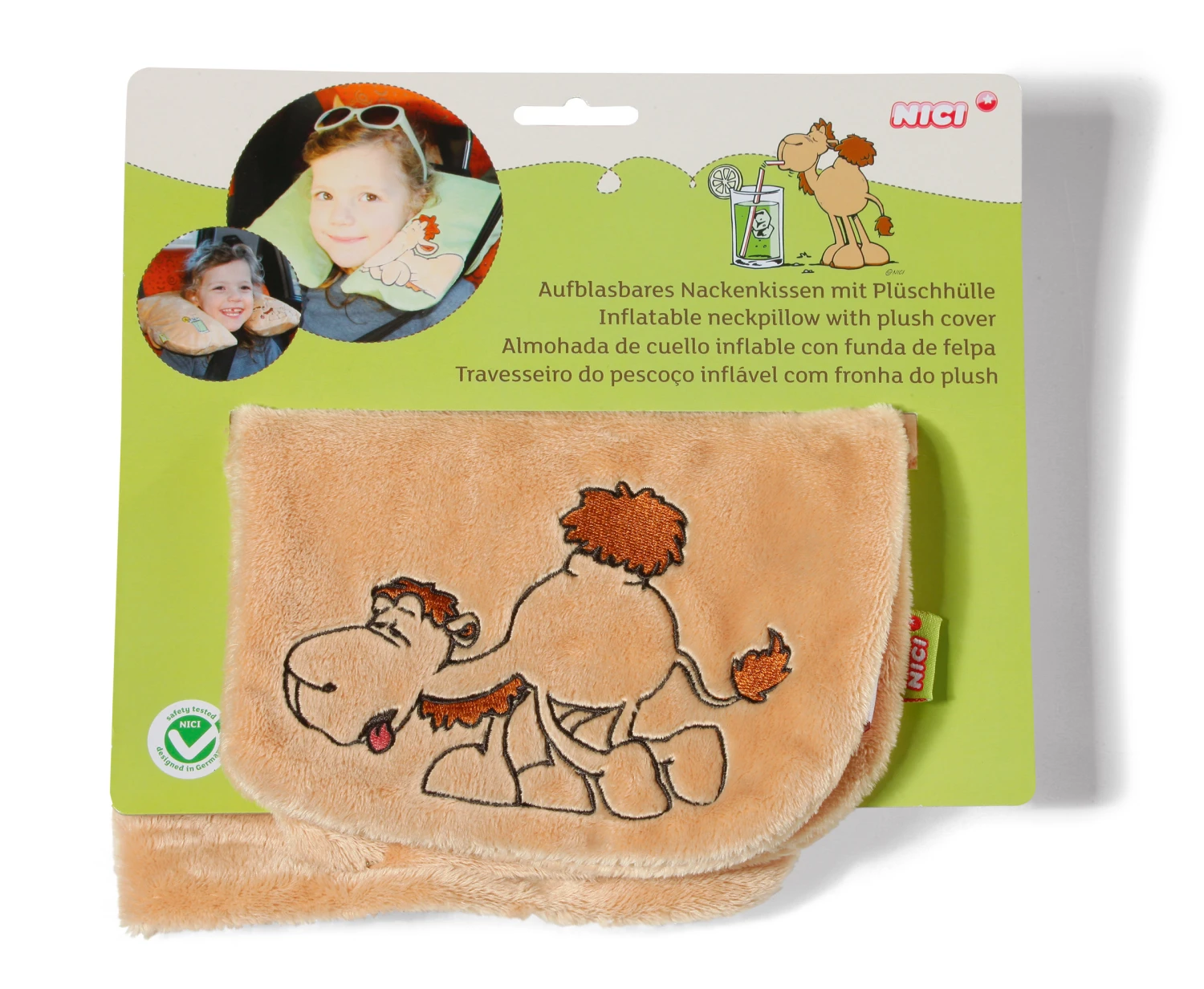 Nici 52055 Aufblasbares Nackenkissen Mit Plüschhülle Kamel Beige
